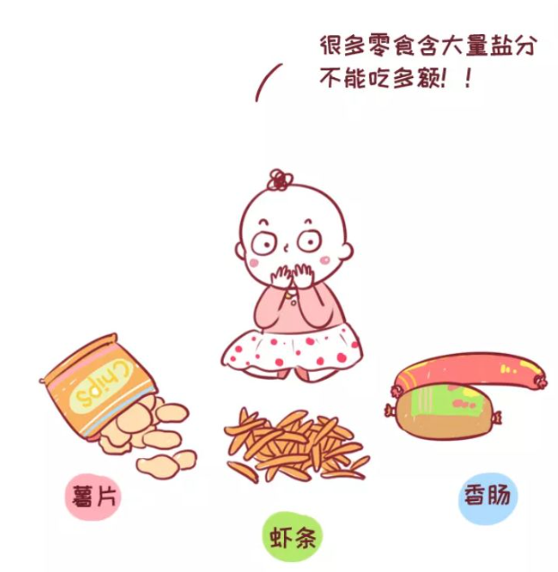 寶寶常吃的餅干、話梅、蛋糕、零食等,在生產過程中加入了含鈉的輔料(比如發酵粉),還會加入一些鹽來調味,吃了也很容易鈉超標。